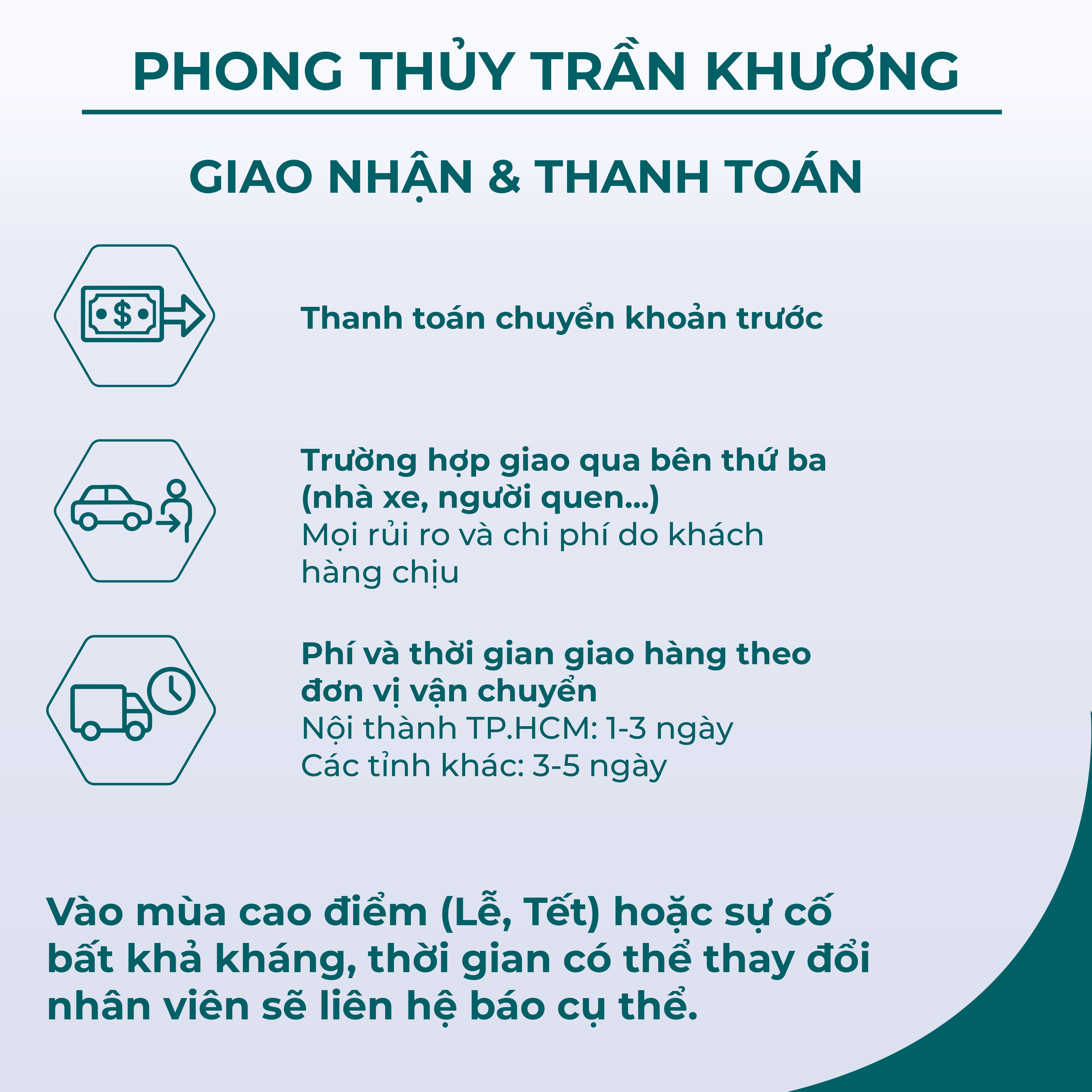 - Khách hàng chuyển 100% giá trị đơn hàng theo số tài khoản do Trần Khương FengShui Tam Gia cung cấp.