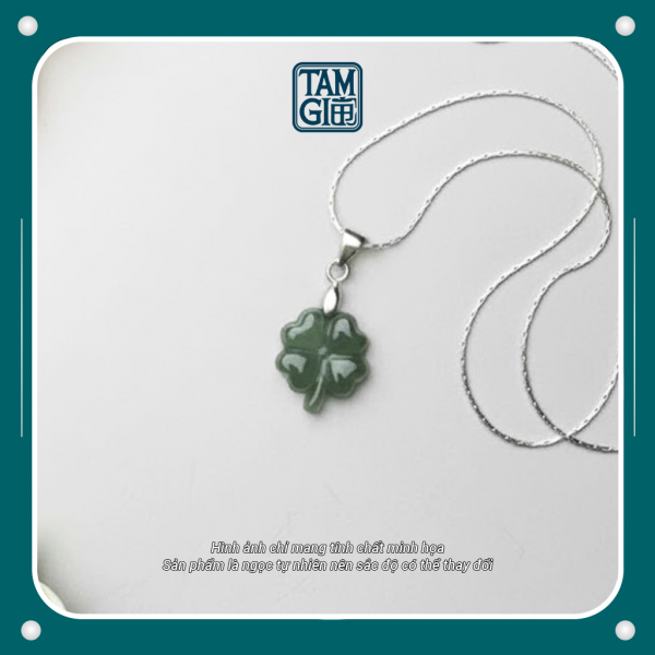 Chế tác: Mặt ngọc Lam Ngọc chạm khắc hình Cỏ Bốn Lá tinh xảo, đi kèm dây chuyền kim loại cao cấp.