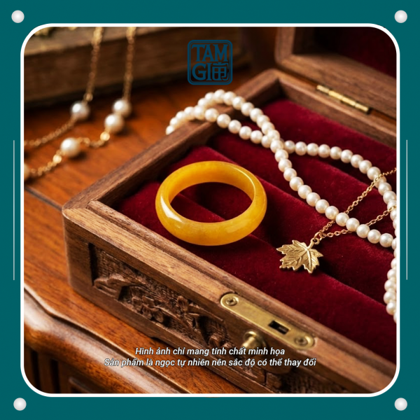 Nhẫn Hoàng Phỉ Cẩm Thạch là vật phẩm phong thủy đại diện cho Tài Khí Vô Biên, Uy Nghi và Sự Thịnh Vượng Tột Bậc. Tông màu Hoàng Kim quý hiếm của ngọc giúp kích hoạt luân xa tài lộc và mang lại vị thế vững chắc cho chủ nhân.