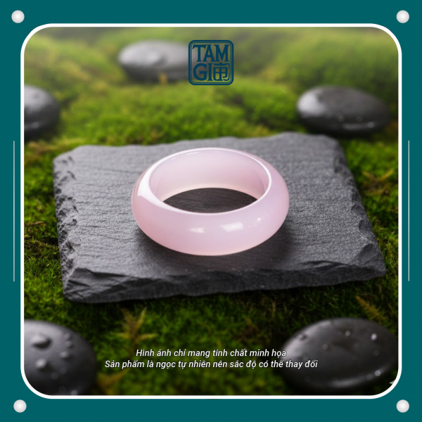 Chế tác: Nhẫn tròn đơn giản, chế tác từ khối đá Thạch Anh Hồng nguyên khối.