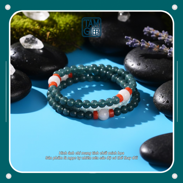 Vòng Lam Ngọc Quấn 3 mix Bạch Ngọc là sự kết hợp năng lượng tinh tế: